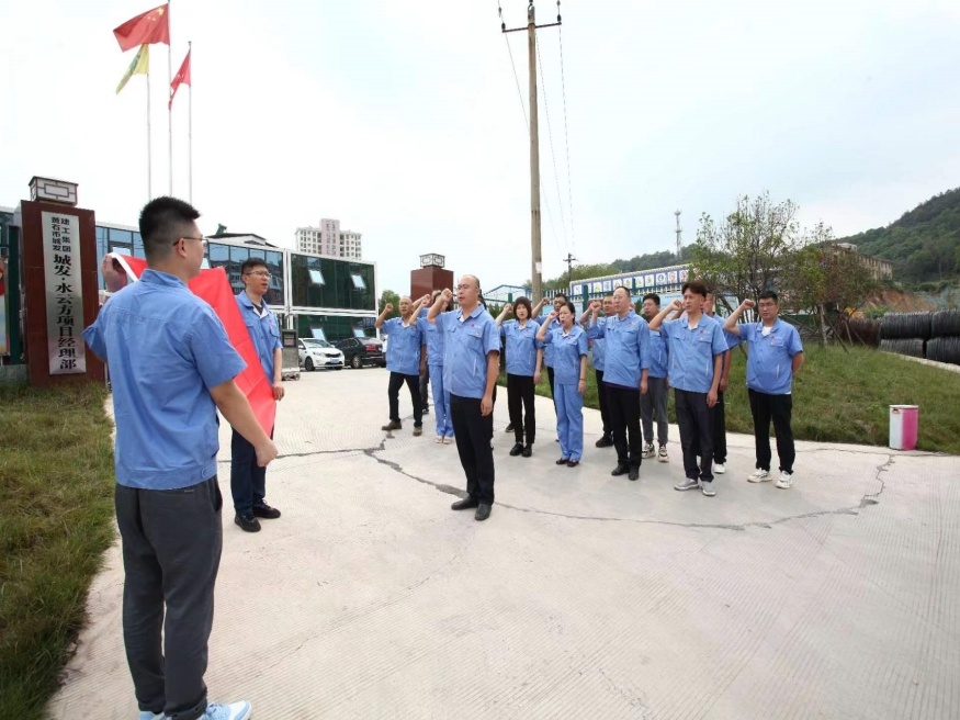 圖為市城發(fā)建設(shè)公司黨支部實施“黨小組+項目部”工作機制,開展“堡壘作用進工地 實干擔當促發(fā)展”主題活動,城發(fā)·水云方項目黨小組正式揭牌。